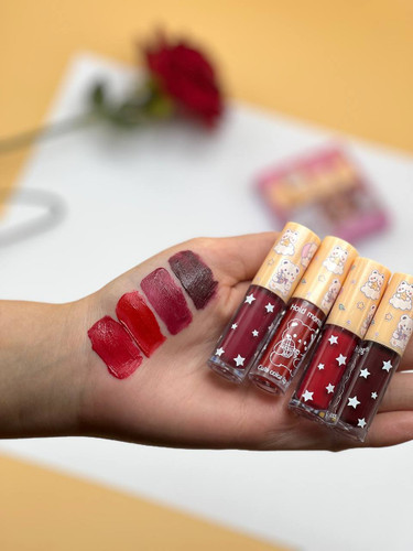 رژ لب مایع فانتزی خرسی | پک ۶ عددی جعبهدار | رنگهای کاربردی و ترند