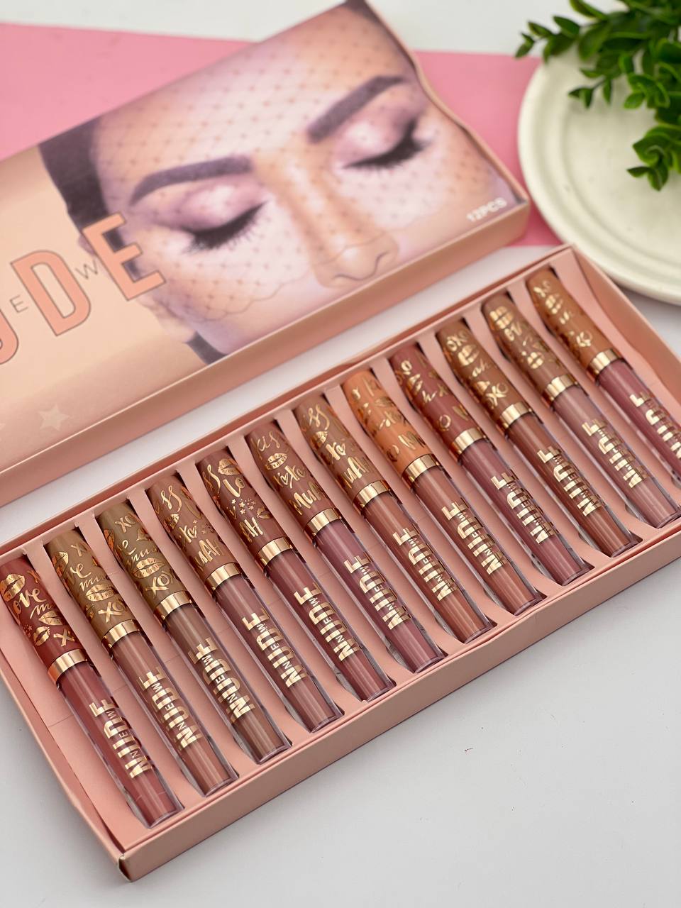 پک ۱۲ عددی رژ لب مایع مات | رنگهای متنوع و شیک