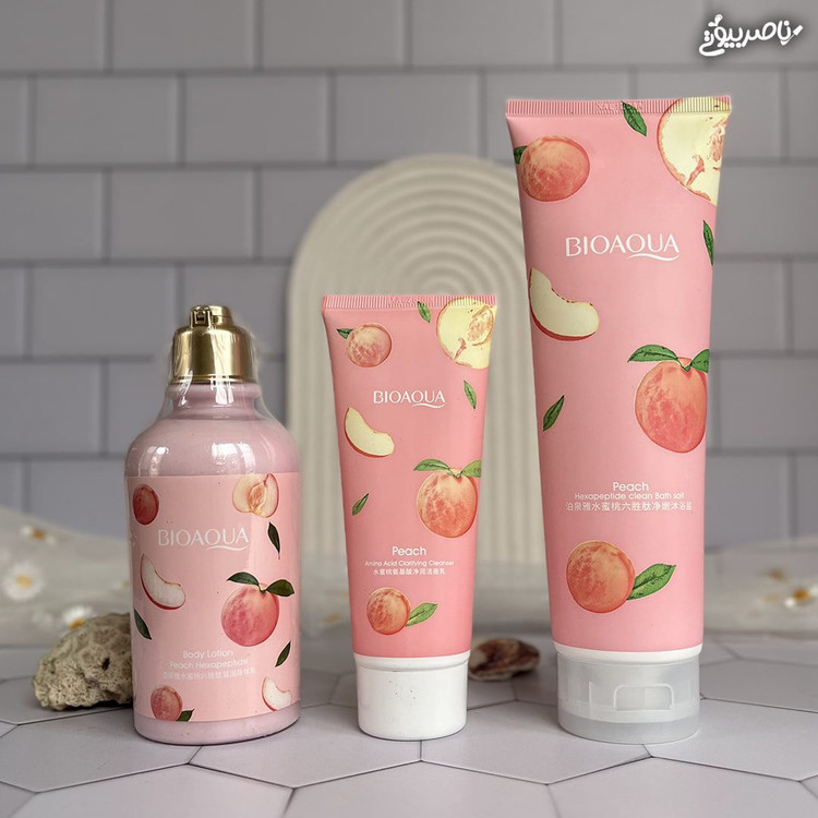 پک هلو پک آرایشی باکس آرایشی هلو ۳تیکه شامل لوسیون هلو و کرم مرطوب کننده و نمک بدن