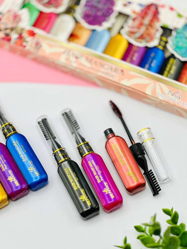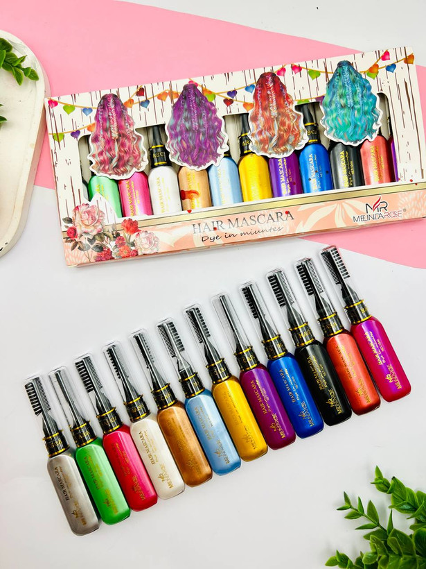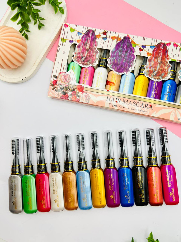 ریمل رنگی مو مخصوص رنگآمیزی موقت موها بدون آسیب و دکلره! پک ۱۲ عددی با رنگهای شاد و فانتزی برای استایل خاص در مهمونیها و عکاسی. این محصول هم مناسب کودکانه هم بزرگسالان، بدون ایجاد چسبندگی یا ضرر به مو.