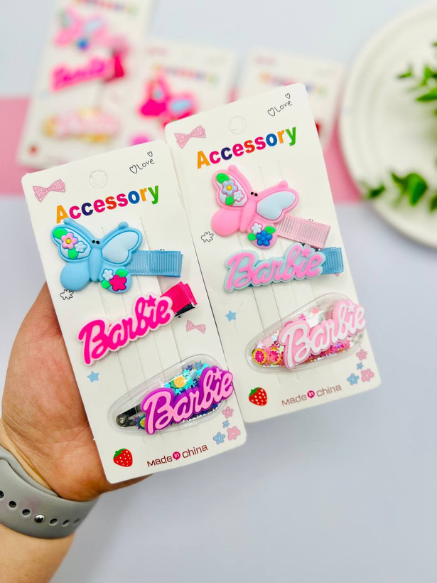 ست ۳ عددی کلیپس فانتزی و گیره تقتقّی رنگی دخترانه