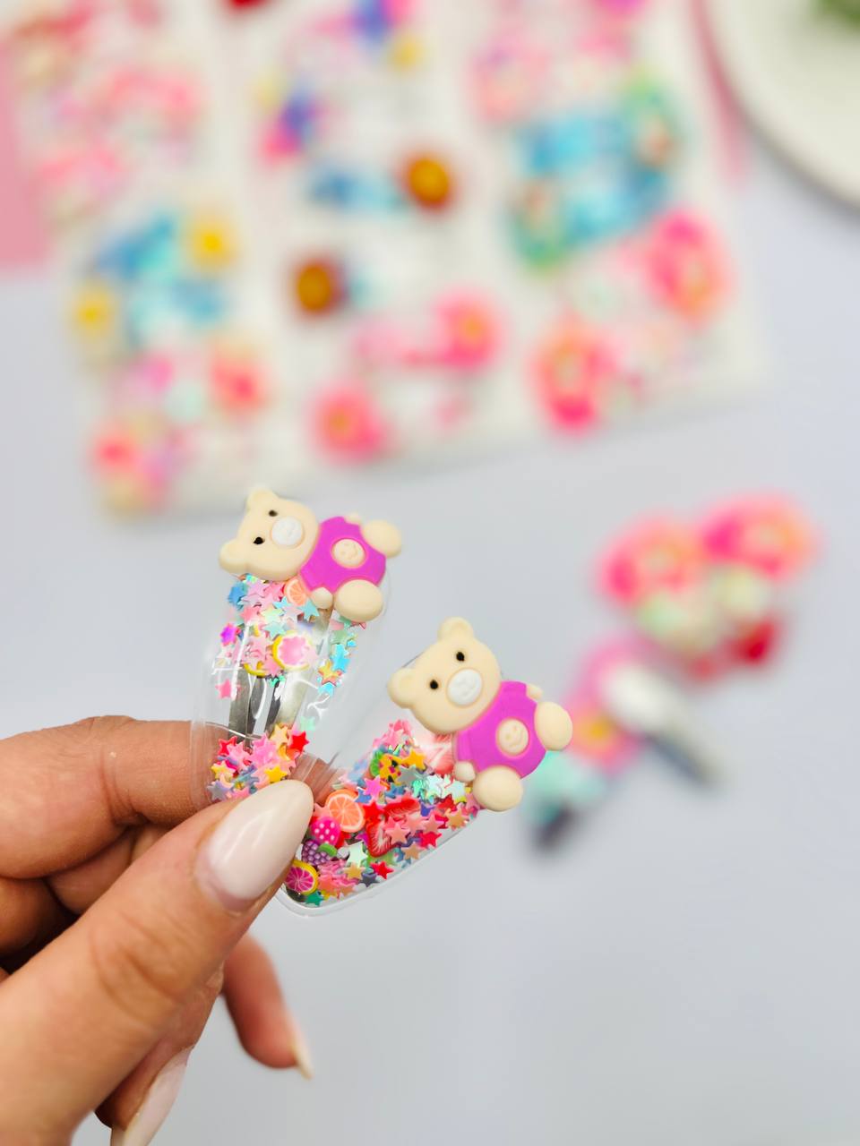 توضیحات: یکی از جذابترین و ترندترین گیرههای سال! گیرههای تقتقّی آکواریومی با رنگها و طراحیهای خیرهکننده که مثل یک دنیای کوچک پر از رنگ داخلشون هست! این گیرهها برای دخترهایی که دنبال خاص بودنن، بهترین انتخابه.
