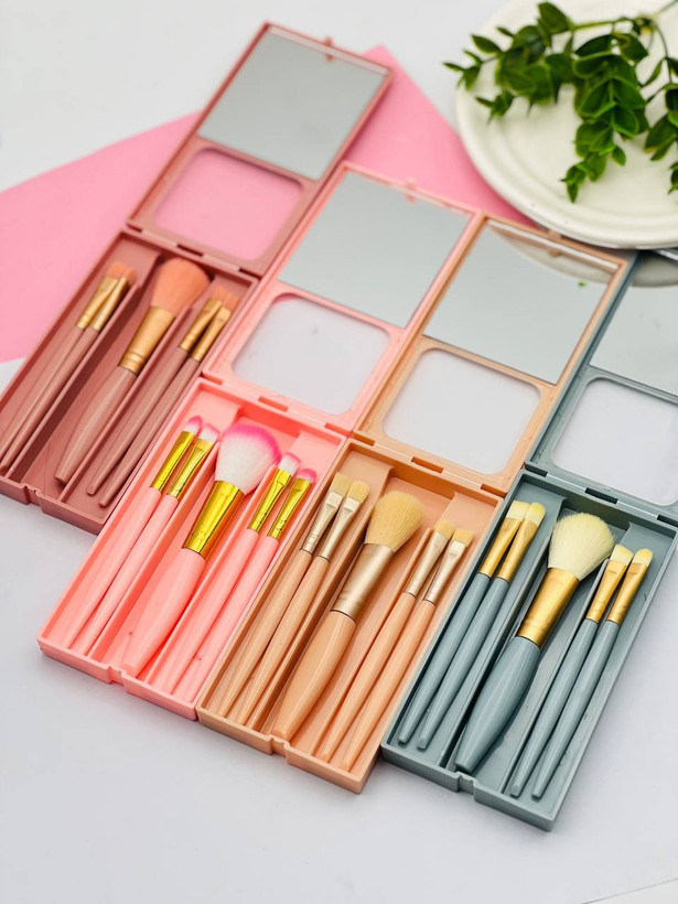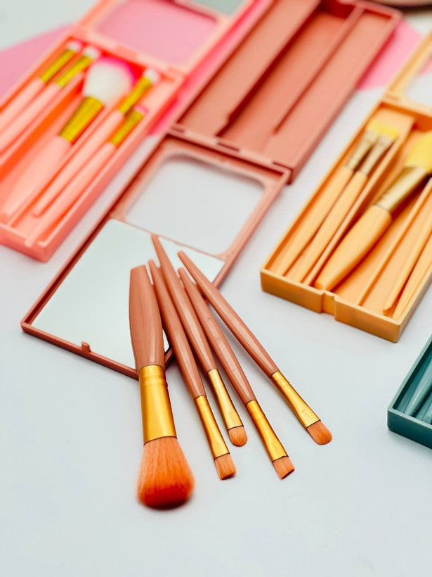 براش ۵ تکه نود شفاف آینه‌دار – مجموعه براش‌های حرفه‌ای آرایشی
