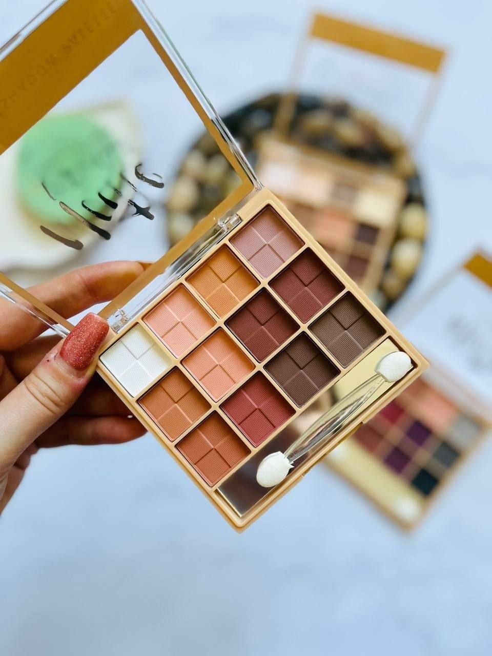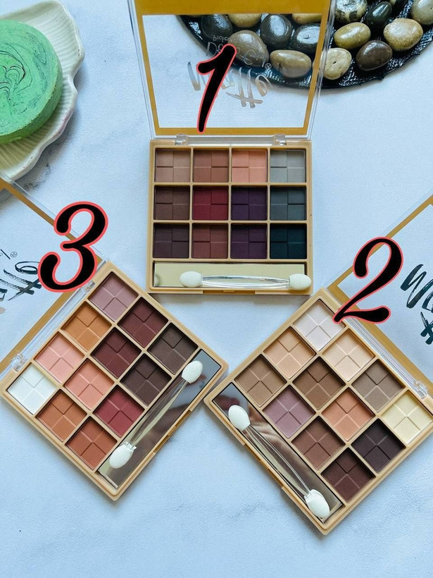سایه ۹ رنگ با بافت نرم و مخملی، پوشش عالی و رنگدهی بالا دارد و به راحتی روی پلک پخش میشود. رنگها متنوع و هماهنگ هستند و میتوانند ترکیبهای جذاب و متفاوتی بسازند.